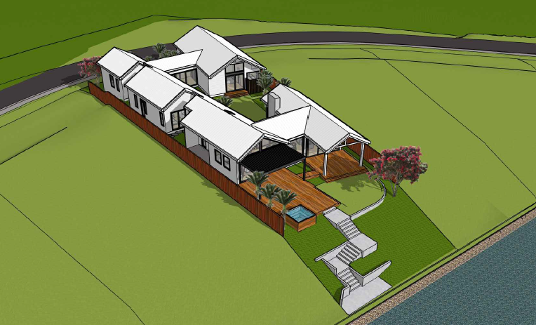 The spectacular location of this future family home along an estuary provided for an interesting opportunity to design a family bach that can accommodate a growing family, multiple generations and water toys.